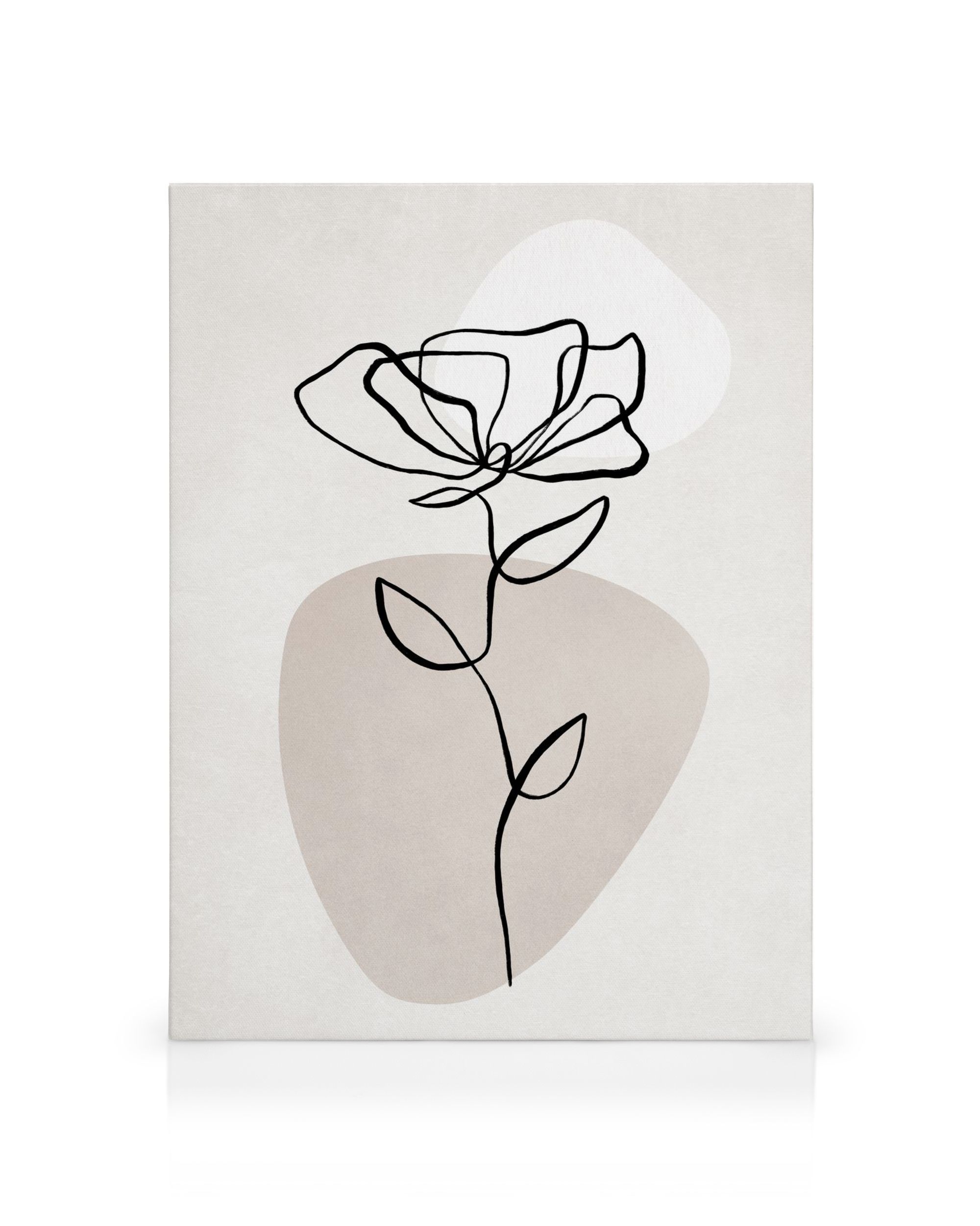 Line art illustration ενός μαύρου λουλουδιού σε ανοιχτό γκρι φόντο με μπεζ και λευκό σχήμα. Με μαλακούς ουδέτερους τόνους και απλή line art θα καταφέρετε να έχετε αυτό το μινιμαλιστικό στιλ!