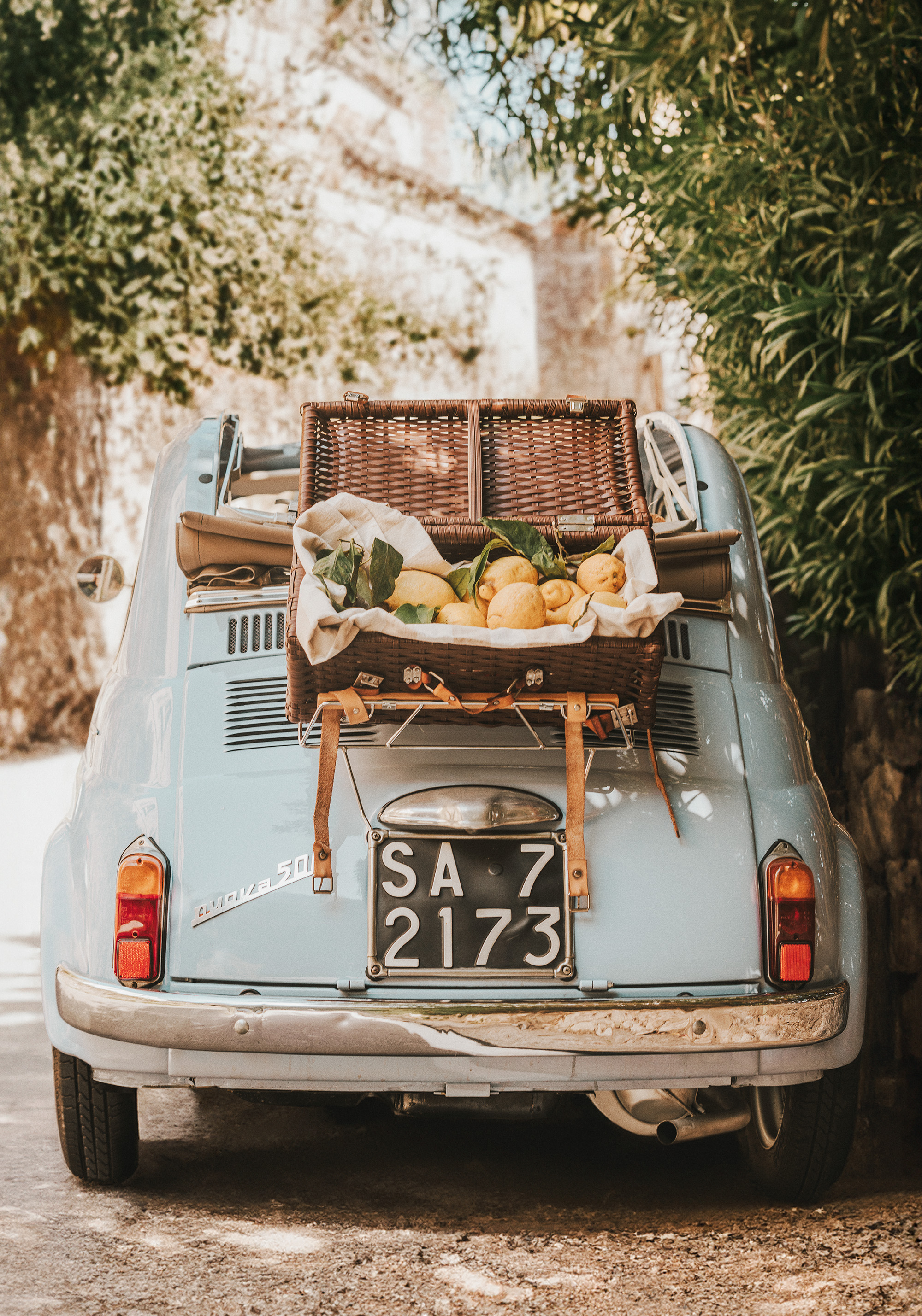 Ένα Ιταλικό πικνίκ! Μπείτε στο κλίμα του ρετρό με αυτή τη νοσταλγική φωτογραφία ενός κλασικού αυτοκινήτου με λεμόνια.